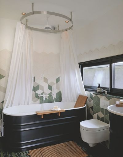 We thought this bathroom with room to move, step back in the mirror. And according to his moods - "? Bath or shower I take my time and I want to be the first?" - We installed a bathtub and shower. Ideally located, the bathtub offers the chance to see the sky from his bath. And drag a little, nonchalantly.